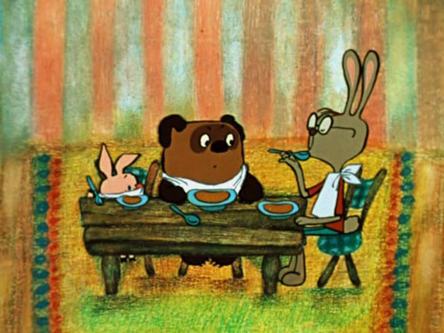 Вам никогда не казалось, что стол, за которым обедают Винни Пух, Пятачок и Кролик какой-то странный? Выглядит так, как будто его собирали неправильные пчелы. Ведь, казалось бы, в соответствии с правилами перспективы, ребро поверхности стола, которое находится ближе к наблюдателю должно быть длиннее, а то которое дальше от него - короче. То есть крышка должна иметь форму трапеции, основание которой находится внизу. В мультфильме же стол действительно имеет форму трапеции. Вот только нарисована она вверх ногами. Длинное ребро вверху, а короткое внизу. Чему нельзя не удивляться.