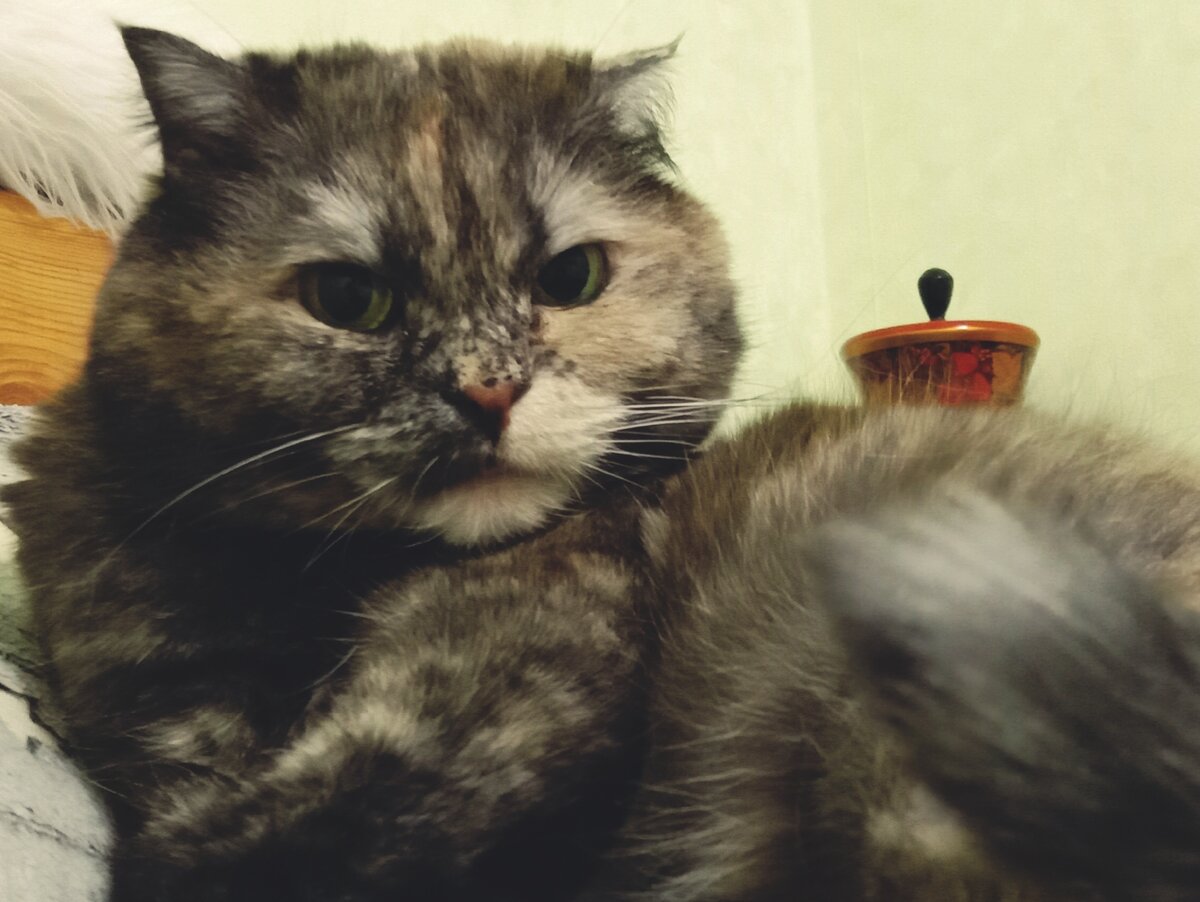 И тут как назло приходит Няша. Садится чуть поодаль и смотрит на все это удивлёнными глазами.