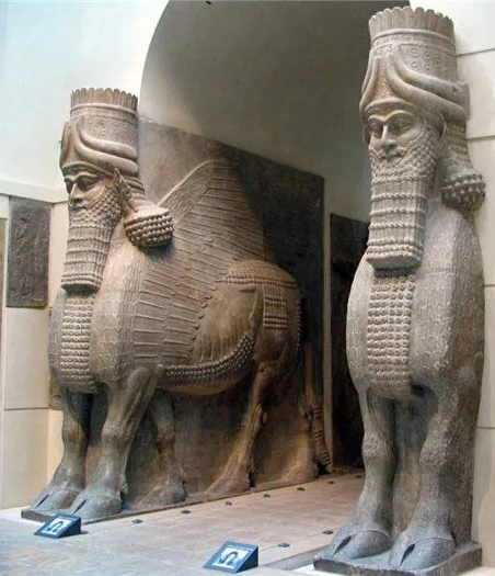 Не забываем также, что вход во дворцы и храмы охраняли статуи быкообразных крылатых колоссов, которых называли шеду. Слово «охраняли» можно употребить здесь по отношению к статуям, так как люди в то время наделяли эти статуи мистической силой. Понятно, что такие статуи должны были охранять входы и в царские сады, которые могли находится при дворцах. Возможно шеду охраняли и входы в сады вельмож.