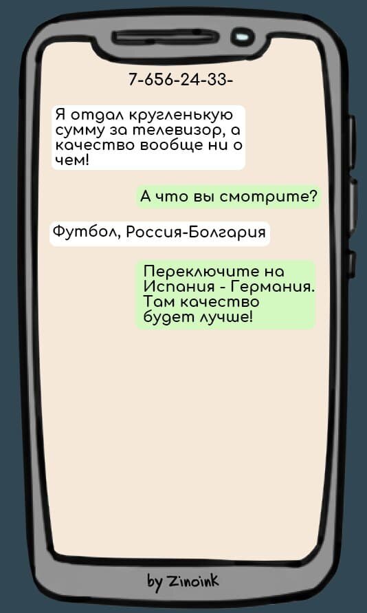 Привет, дорогой друг! Поскольку осенью у многих наблюдается спад активности, то я не буду предлагать ворваться в новую рабочую неделю. Давайте просто аккуратно начнем выполнять рабочие задачи, рассчитывая силы, чтобы их хватило до пятницы. В качестве допинга могу предложить #юмор , ведь у меня готовые новые забавные #смс переписки . Сегодня в поле моего зрения попали #сообщения между покупателем и продавцом, в которых первый пытается вернуть товар, а второй выясняет причину возврата. Покупая более современную технику домой на замену, рассчитываешь на более крутое качество. Если после покупки ты не ощущаешь резкого повышения уровня, то начинаешь чувствовать себя обманутым. Продавцы часто давят на самое больное, чтобы #продажи были более эффективными, и расписывают клиенту потрясающее будущее. Часто это приводит к тому, что покупатель после начала эксплуатации связывается с продавцом, чтобы вернуть товар. Если ты хочешь купить оригинальные товары, но при этом еще и как-то сэкономить, ты