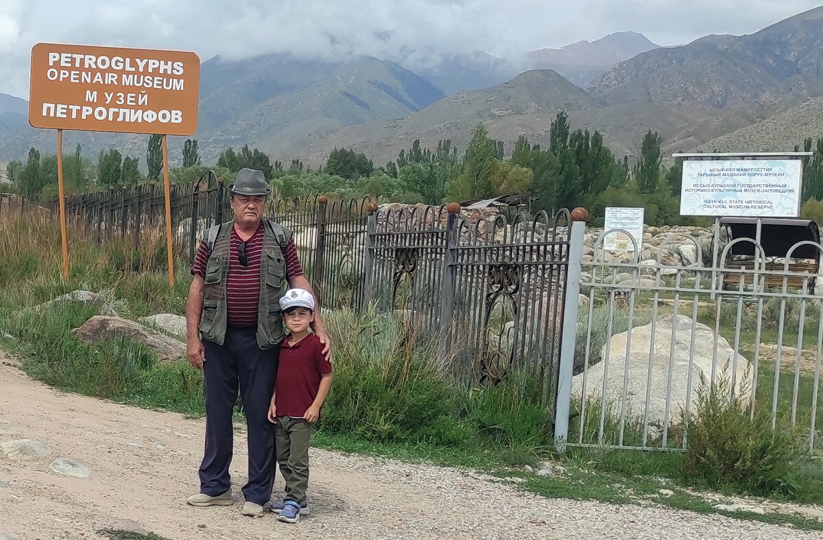 Обнаружив в интернете наличие Музея петроглифов в Чолпон-Ате, предложил сходить в это место. От нашего жилья до музея было чуть больше 4 км., поэтому решили прогуляться пешком. Дорога нормальная, навигатор не даст заблудится, отправились по холодку. Кстати на Иссык-Куле температура на 10 градусов ниже, чем в Чуйской долине. Больше +20 ни разу не поднялась. Место грандиозное - из ущелья столетиями, а может и тысячелетиями, выносило валуны, от огромных, до совсем небольших. Все это лежит веером в долине. Эти камни наверное достигают озера. Ниже музея построены дома и видно, как эти валуны, бульдозером сдвинуты к краю участков. На многих камнях изображения животных. Где-то четкое, где-то уже еле видное, столько лет простоять. Стоят указатели, что и в какое время было изображено. Перед нами шла группа с экскурсоводом, он только прибежал взять с нас оплату. Заплатили по 40 сом и он снова убежал продолжать экскурсию. На большинстве камней изображены козлы. Когда от группы отделилась пожил
