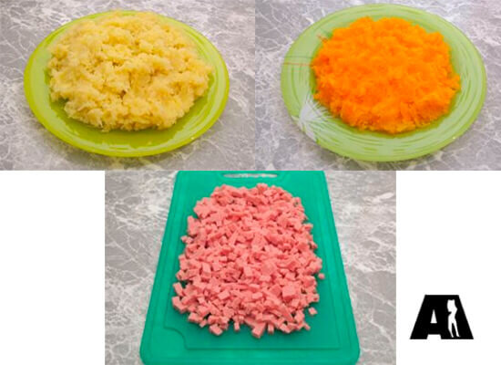 Грядущий год 2022 будет Водяного Тигра, и конечно, хочется на новогоднем столе видеть необычный салат при этом легкого приготовления. Именно таким салатом мы вам и предлагаем украсить ваш новогодний стол. Для приготовления нам понадобиться: 400гр моркови 400гр картофеля 200гр вареной колбасы 200гр огурцов 3 яйца Лук-порей 100гр маслин без косточек 500мл майонеза Пошаговый рецепт приготовления: 1.) Отварить овощи (картошку, морковку и яйца). 2.) Натираем на мелкой терке. 1 яйцо оставляем для украшения. 3.) Нарезаем огурцы, колбасу и лук-порей. 4.) Теперь выкладываем все слоями в виде мордочки «Тигра» таком порядке: картошка, колбаса, огурцы, лук и 2 яйца, морковь. Незабываем каждый слой смазывать майонезом. 5.) Маслины нарезать и сделать из них полоски на голове тигра, а также реснички и глаза. 6.) Глаза сделать из оставленного яйца, а зрачки сделать из огурчика. 7.) Мордочку делаем из тертого белка, а язычок, конечно, из колбасы. Источник: https://adele-me.ru/kulinariya/