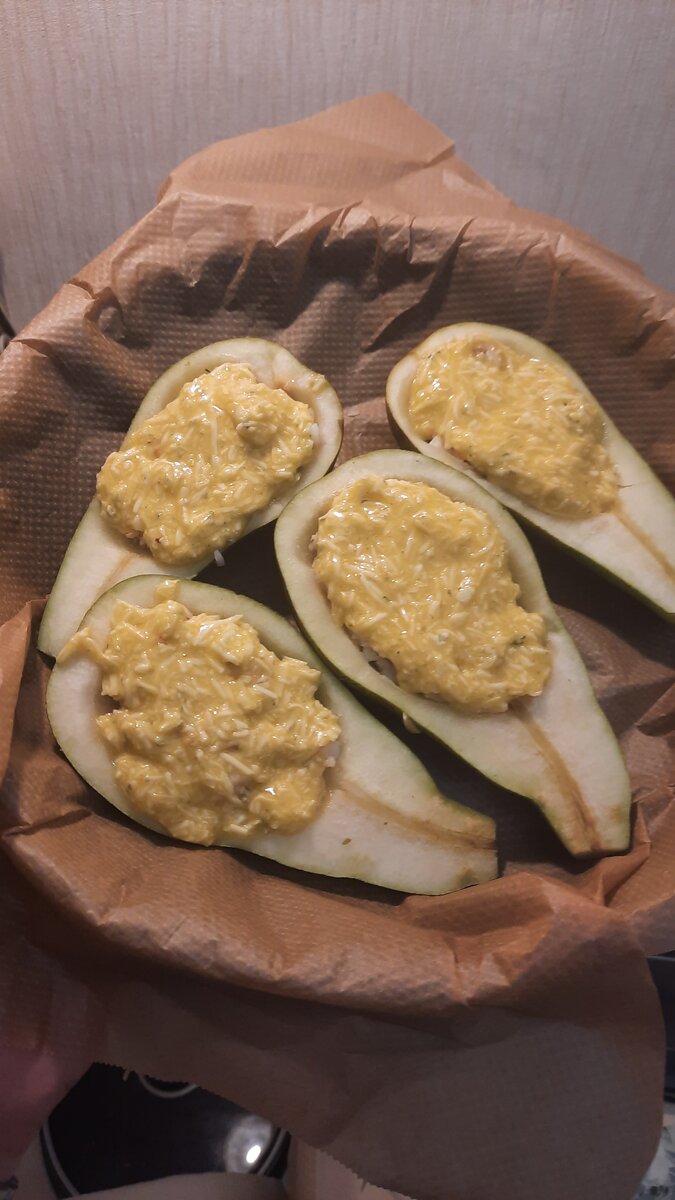 Добрый день, дорогие подписчики и гости моего канала. Спасибо, что заглянули на мою страничку. Давно мы с Вами не готовили. А тут... готовила обед, по телевизору шли повторы сериала "Кухня". Делали они необычное блюдо Фурм Д`Амбер с запеченной грушей. Конечно, я решила повторить. Тем более все необходимые ингредиенты у меня были дома. Итак, нам потребуется: Груши хорошо промываем. Вытираем насухо. Затем разрезаем груши вдоль пополам и вырезаем сердцевину. Креветки мелко нарезаем и укладываем в груши. Сыр натираем на средней терке. Добавляем яйцо в натёртый сыр. Хорошо перемешиваем. Добавляем начинку в наши груши. Запекаем 15-20 минут при 200C. Подаём горячими. Необычная, вкусная закуска готова. Гости будут удивлены. На вкус очень оригинально. Готовится легко и быстро. P.S. Сыр покупала в Ашане. Думаю, можно заменить на любой сыр с плесенью). Готовьте с удовольствием и приятного аппетита). Если понравился рецепт, не скупитесь на реакцию👍 Всем отличного дня и хорошего наст