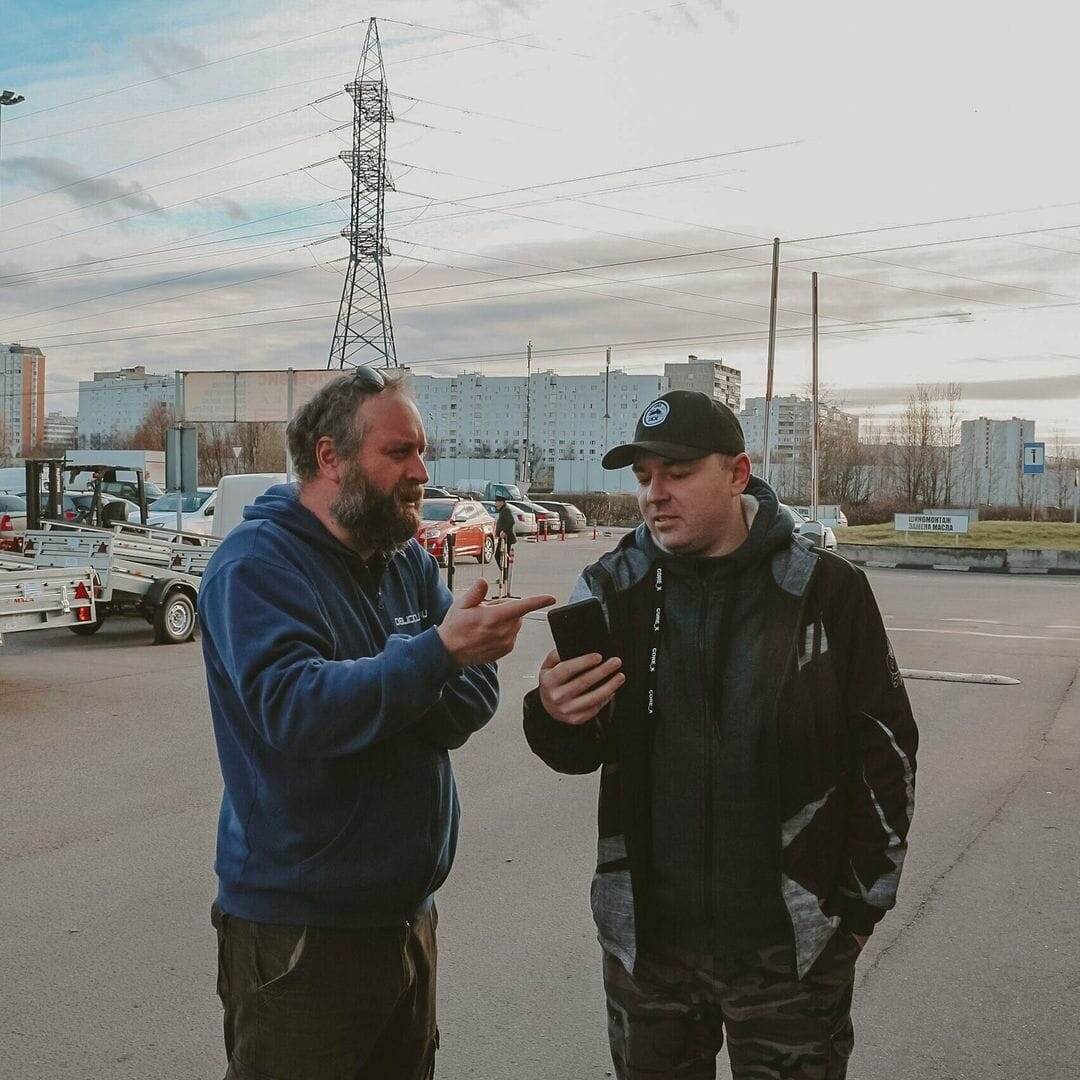 Фото общения и обмена мнениями по поводу выбора прицепа с человеком, с которым сегодня спонтанно познакомился в «Планете Железяка» в поисках прицепа 🚃🚃