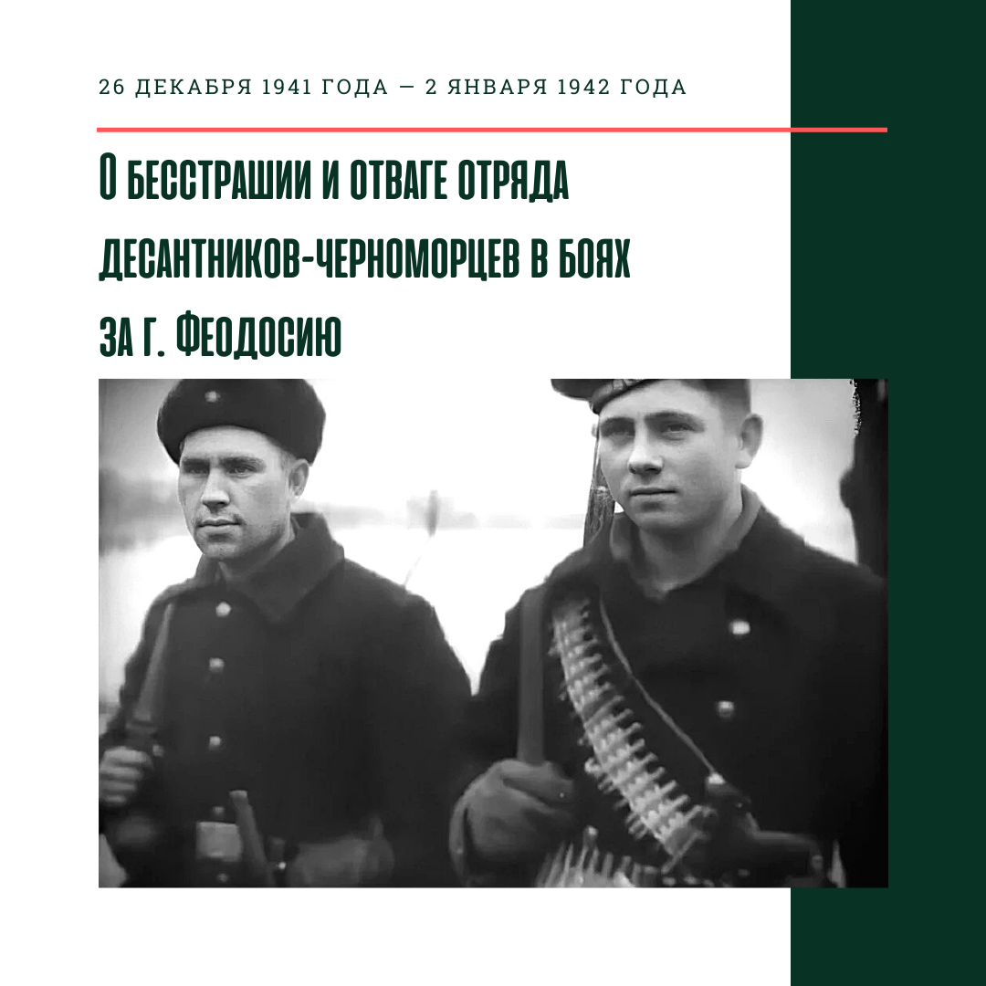 Смело, дерзко, умело выполнил морской десант боевое задание, вместе с частями Красной Армии освободив Феодосию от фашистских захватчиков.