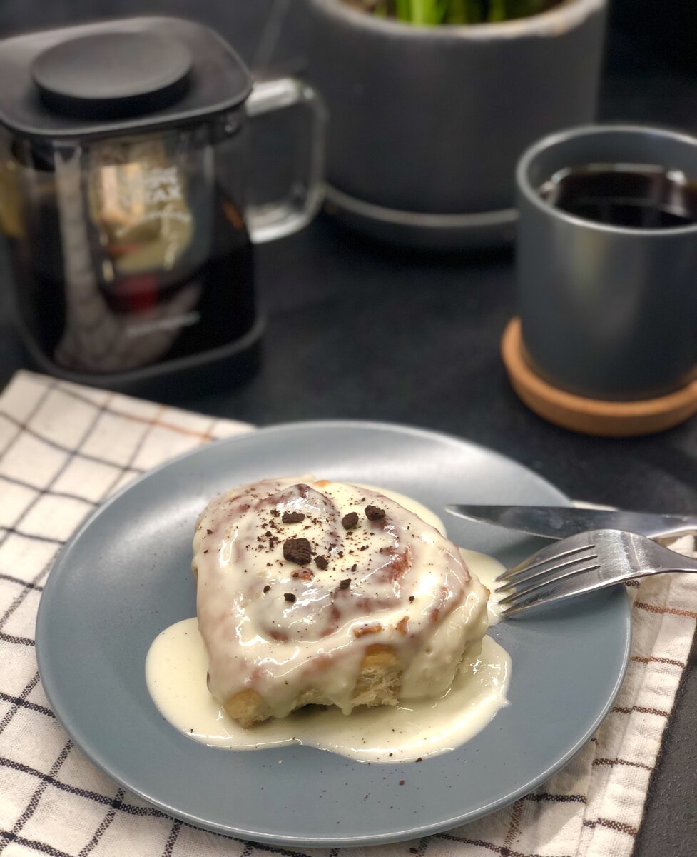 Что нам понадобится: В тёплое молоко добавляем ложку сахара и дрожжи. Оставляем на 10-15 минут, пока поднимется опара. Сахара 100 гр. взбиваем с яйцами, во взбитые яйца с сахаром добавляем растопленного масло. Когда опара поднимется, смешиваем ее с яично-масленной смесью, добавляем муку. Мешаем все руками, тесто не должно быть крутое, слегка липнуть к рукам. Тесто оставляем минут на 40-60. Начинка для промазывание слоев : Масло растопить до мягкого состояния, добавить сахар и корицу. Тесто подошло, слегка его перемешиваем и добавляем ещё 100гр. муки. Выкладываем на стол слегка тесто нужно рассучивать в прямоугольный пласт, выкладываем на тесто сахар с корице и маслом. Затем сворачиваем все в рулет и нарезам кусочками толщиной 5-6 см. СиннаБоны выкладываем в форму и оставляем ещё на 15 минут слегка подняться. Выпекать при температуре 180-200 градусов 15-20 минут. Готовые стнабоны Полисть помадкой. Готовим помадку, сливки подогреть, но не кипятить. Добавить в сливки шоколад,пер