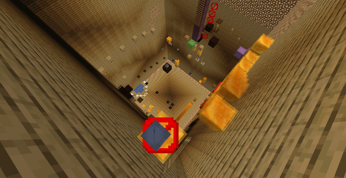 2. Закрытие проигрывателя. Так как вариант сношения его не подходит, ибо наблюдатель опять активируется, ибо блок пропадает, то идеалом остаётся закрыть возможность трогать проигрыватель, шоб избежать поломку механизма. /fill -1455 65 303 -1455 65 303 minecraft:oak_planks (Ставлю подходящий блок на нужных координатах)