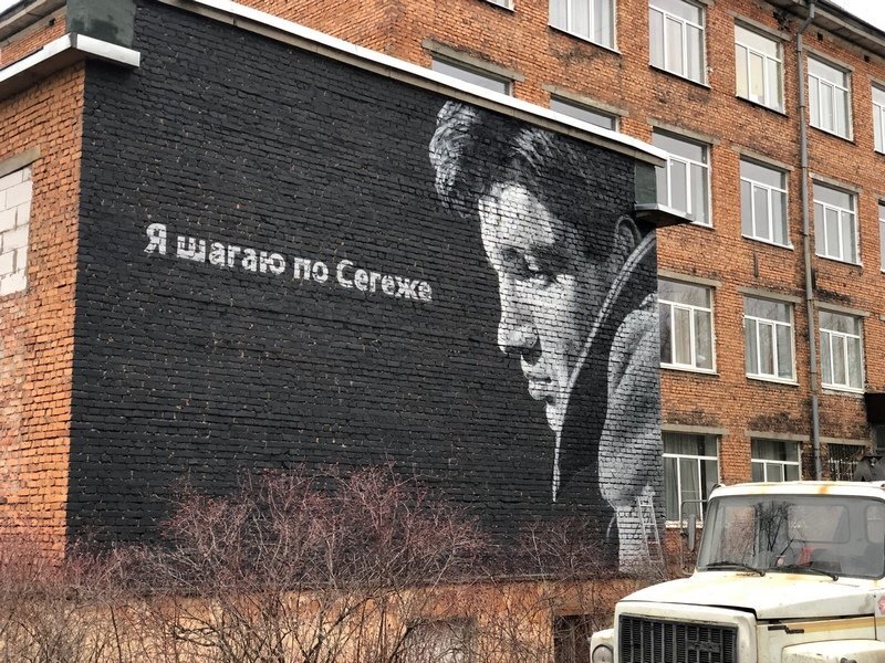 В Сегеже появилось граффити с автором сценария фильма и слов песни «Я шагаю по Москве»