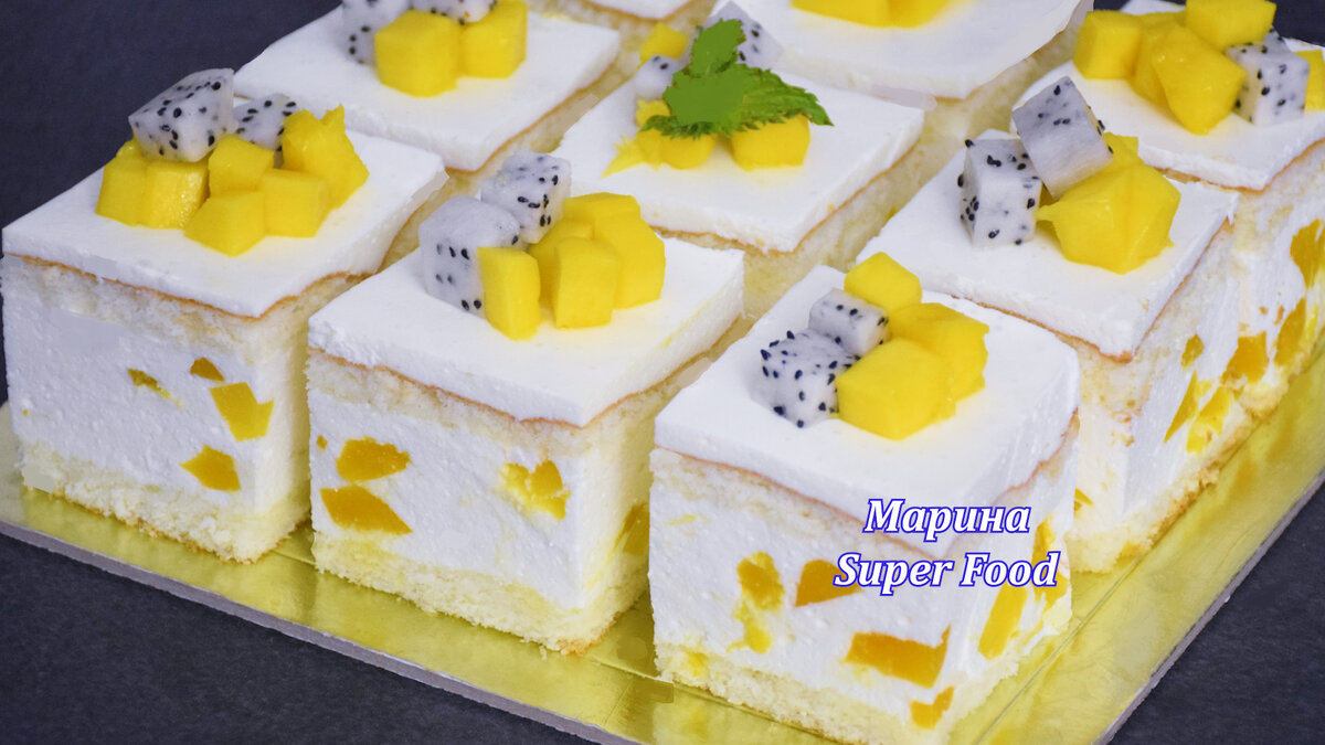 Рецепт простого, но очень вкусного творожного пирожного. Нежные, легкие и воздушные квадратики с кусочками фруктов. Непременно попробуйте этот десерт с чашечкой чая. ПРОДУКТЫ ДЛЯ РЕЦЕПТА, А ТАКЖЕ ВИДЕО РЕЦЕПТ ВЫ НАЙДЁТЕ В КОНЦЕ ЭТОЙ СТАТЬИ. 1. Итак, сначала нужно приготовить бисквит. В пшеничную муку всыпаю разрыхлитель. Перемешиваю чтобы сухие ингредиенты хорошо соединились. Просеиваем эту смесь. 2. Разбиваем в чашу миксера куриные яйца, добавляем к ним сахар и соль. Взбиваем сначала на средней скорости, потом на самой высокой, пока яйца с сахаром не превратятся в пушистую побелевшую массу, а кристаллики полностью не растворятся (7 минут). 3. Вмешиваем смесь муки и разрыхлителя аккуратными движениями с помощью венчика. 4. Диаметр моей формы 23х23 см. На дно стелю бумагу для выпечки, по бокам ничем не смазываю. Перекладываю тесто в форму. Выпекаю в предварительно прогретой духовке 20 минут при 180 градусах. Готовый бисквит достаю из формы. Оставляю полностью остыть и разрезаю на два ко