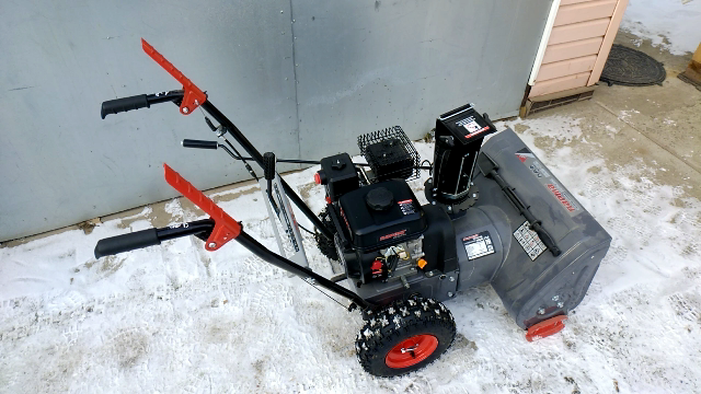 Подготовим уборщик к зиме: Заменим 5W-30 и заправим бензин. Всем доброго здоровья. Дорогие подписчики и гости канала. После покупки в прошлом году, пришлось много времени потратить на подготовку снегоуборщика к работе. В этом году всё обслуживание заключается в замене масла. И так давайте приступим к работе. Находим на двигателе место, с завинчивающейся крышкой в которую вмонтирован щуп. Чуть ниже и слева выходит штуцер для слива. Ставим уборщик на ковш для удобства и снимаем правое колесо. Нужно отогнуть кольцо и выдернуть шпильку. Снимаем колесо, ставим аппарат на место и подкладываем под ось кусочек фанеры. Далее, берём плоскую ёмкость и ставим под штуцер. Ключиком на 10 откручиваем пробку. Отработанное масло струйкой стекает в пластиковый поддон. Ждём пока не перестанет течь или не заполнится поддон. Затем добавляем под ось прокладку по толще и сливаем из ёмкости в подготовленную баночку. Пока переливал, на пол натекло масло, значит мало подложил. Поэтому, ёмкость для слива гото