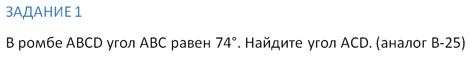 На этой неделе начну цикл разбора заданий про четырехугольники. Напомню вам, что Четырёхугольник — это геометрическая фигура, состоящая из четырёх точек (вершин), никакие три из которых не лежат на одной прямой, и четырёх отрезков (сторон), последовательно соединяющих эти точки. В школьной программе более подробно рассматриваются особые типы четырехугольников: трапеции и параллелограммы. Эти четырехугольники обладают своими свойствами. Трапеция — это четырехугольник, имеющий две параллельные стороны, являющиеся основаниями и две не параллельные стороны, являющиеся боковыми сторонами. Параллелограмм — это четырехугольник, у которого противоположные стороны являются попарно параллельными. Сегодня в центре внимания РОМБ. Ромб – это разновидность параллелограмма, у которого все четыре стороны равны Рассмотрим 4 задачи схожие с задачами из сборника "36 вариантов" под ред. Ященко При решении этого задания вспоминаем два свойства: 1) углы, принадлежащие одной стороне параллелограмма