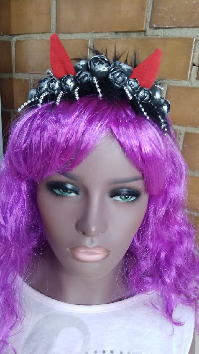 (В статье есть видео.) Вот и праздники уже подошли к нашему порогу. Хоть и хэллоуин не наш праздник, но все чаще и чаще встречаешь и слышишь от людей, что к нему готовятся и празднуют. И поэтому я предлагаю вам сделать самостоятельно красивые черные рожки, как атрибут карнавального костюма. который можно одевать не только на хэллоуин, но и на новый год и рождество. Для этого нам необходимо подготовить основу - ободок, кусочки флиса красного, набивной материал, фетр черный для основы 15 - 16 см. на 3 см ( у меня драп), цветочки из черного фоамирана, полоска длиношерстного черного меха и нитка серебряных бусин для украшения. Для изготовления ободка рожки подготовим ободок и основу. Вырежем основу 15-16 см на 3 см, округлим её. Нам необходимо подготовить розочки из фоамирана или взять уже готовые. Из флиса сделаем заготовки для рожек. Флис хороший тянущийся материал, поэтому у нас легко получатся красивые рожки. За дальнейшим процессом изготовления можно проследить здесь. У нас с вами