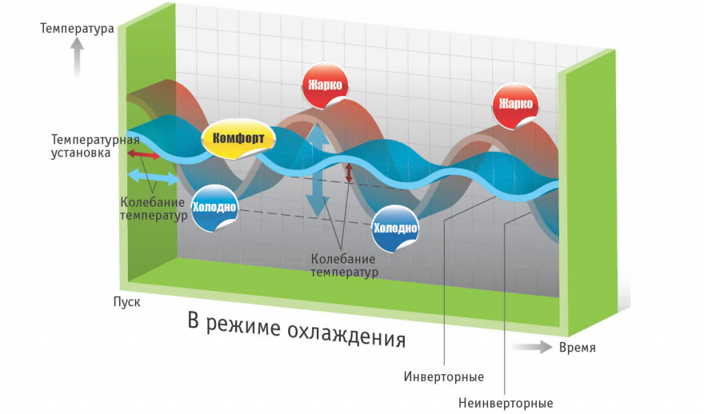 - более низкая точность при поддержании температуры (в сравнении с инверторным типом);