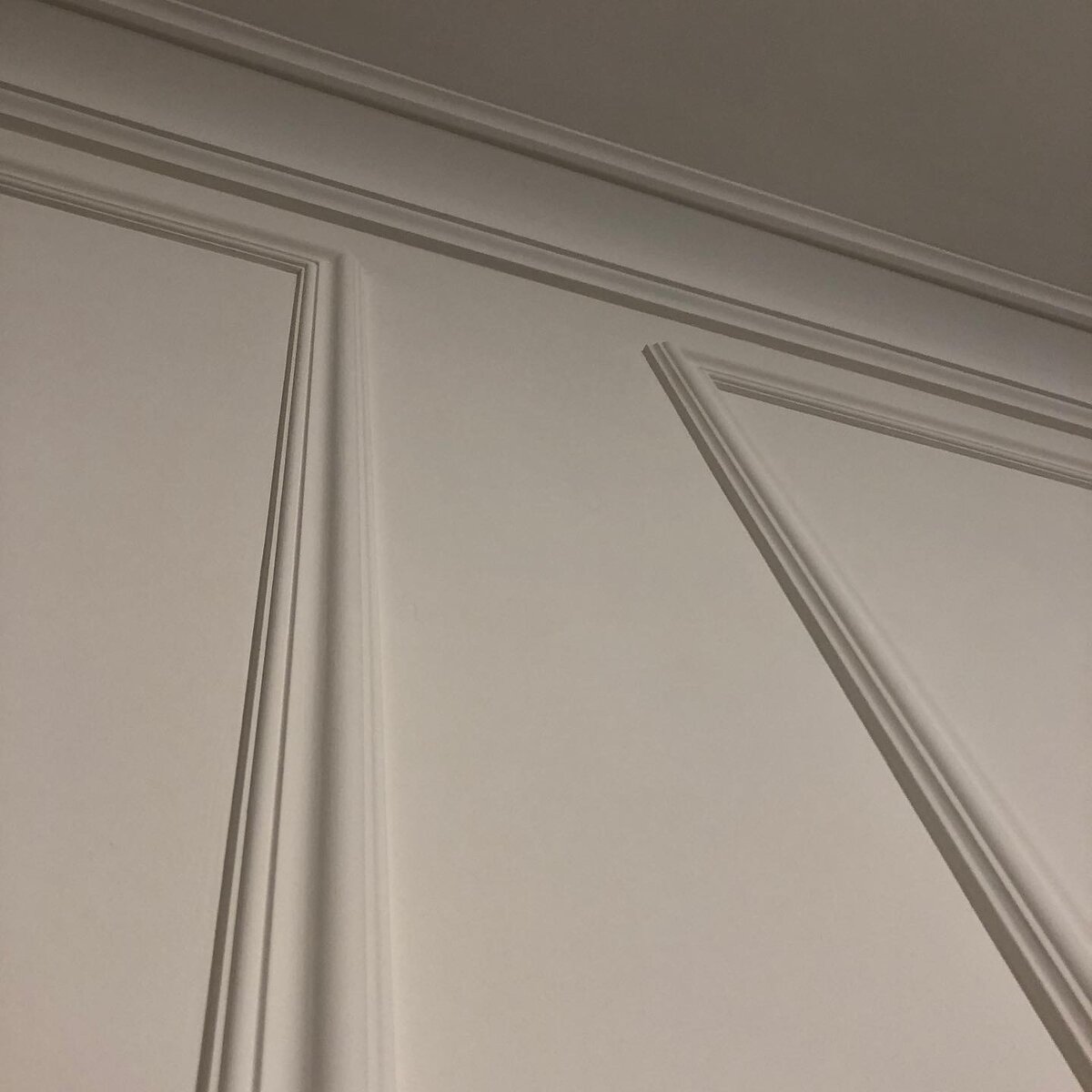 Хотелось принести в #интерьер изысканности, при этом не превратив его в торт свадебный торт. Молдинги нужно было разместить так, чтобы они не зависели от мебели и чтобы можно было повесить интерьерные картины. И они не закрыли всю конструкцию. Было также много размышлений на тему потолочного карниза, а точнее его ширины. В итоге его ширина 13,5 см, сначала мне казалось, что это много, потом, что это мало. Но у нас был скрытый карниз для шторы, которой нужно было закрыть и в итоге пришлось отталкиваться от уже возведённой конструкции. Вживую, как не странно, карниз смотрится достаточно широким. Нужно было также обойти все розетки, я считаю, что розетки и выключатели должны быть либо внутри рамки, либо снаружи. Встреча с Петром - мастером по лепнине и хозяином собственной фирмы по