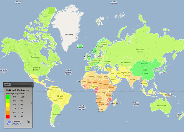 Делать умозаключения о странах мира и людях, их населяющих, интереснее всего на собственном опыте, то есть отправившись в эти страны. Однако масштабные исследования социологов позволяют расширить границы сознания не выходя за пределы электронных географических карт и оставаясь у мониторов. «Моя Планета» выбрала 10 карт мира, которые могут изменить или подтвердить ваше представление о некоторых странах и особенностях жизни в них. Уровень IQ Карта уровня интеллекта народов 113 стран мира, составленная по результатам исследований британца Ричарда Линна и финна Тату Ванханена. Факт: Самым умным оказался Сингапур с IQ-коэффициентом 108. Оплачиваемый декрет Карта на основе статистики американской ученой-социолога Джоди Хейманн из США демонстрирует, в каких странах мира предоставляется отпуск по уходу за ребенком и какой он продолжительности. Факт: США попали в восьмерку стран, где нет оплачиваемого декретного отпуска. Среди других недружелюбных к молодым мамам государств: Палау, Науру, Папуа