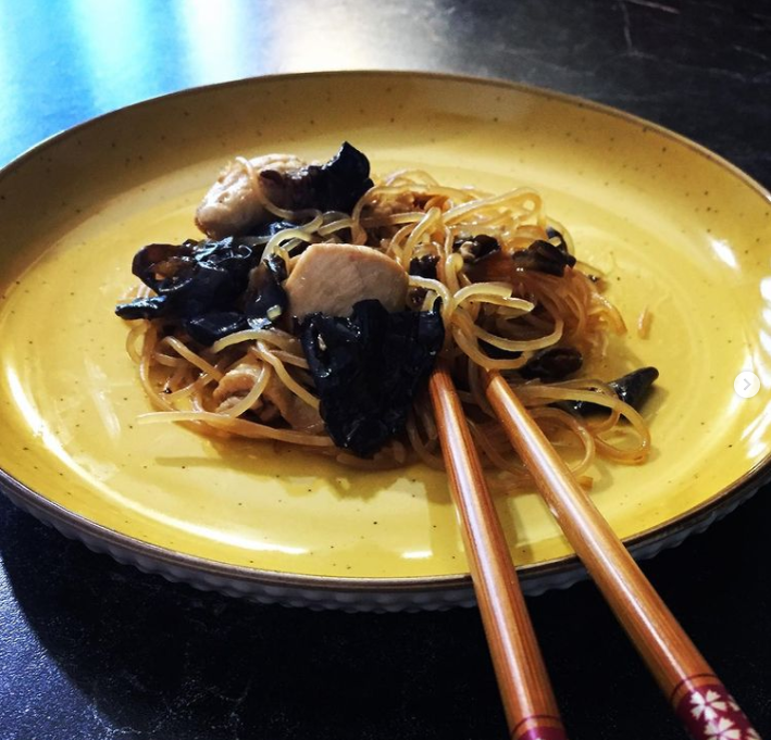 1.Крахмальную, рисовую или любую другую прозрачную лапшу отвариваем по инструкции на пачке. 300 грамм.