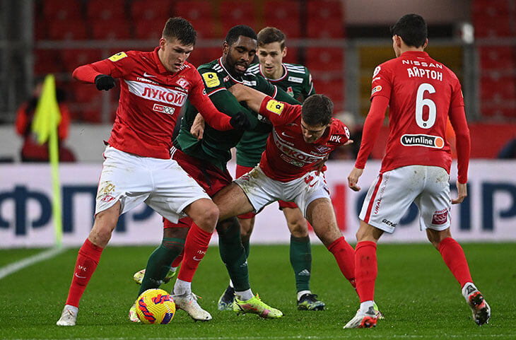 Старт матча точно остался за «Спартаком». Команда Руя Витории и больше владела мячом, и забирала подбор (например, дважды перед ударом Зобнина на 4-й минуте), и выходила из-под прессинга (атака с ударом Мозеса на 5-й минуте). За пять минут «Спартак» нанес 3 удара. Проблема – их острота. Литвинов вообще не попал по мячу, а удары Зобнина и Мозеса заблокировали защитники. Почему тогда выделяем этот отрезок? Больше «Спартак» не бил в первом тайме. 3 удара за 45 минут – все в стартовую пятиминутку. После 5-й минуты «Локо» забрал мяч себе, а «Спартак» откатился ближе к центральной линии. В первом тайме «Спартак» не совершил ни одного отбора на чужой половине в начале позиционных атак «Локо», а команда Гиздоля сама потеряла мяч лишь дважды. Первый – при коротком розыгрыше штрафного, когда «Спартак» все-таки оказал давление у чужой штрафной, а Жемалетдинов некачественно принял вынос Гильерме, второй – вообще уже в большинстве, когда Едвай подсунул мяч Куликову, которого со спины встретил Игнат
