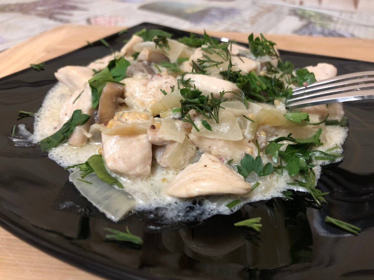 Курица с грибами в сливочном соусе - очень просто и вкусно.