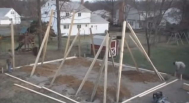 Затем сооружается цокольная обвязка по всему периметру фундамента, на которую будет закреплен несущий каркас, и откосы, соединяющиеся с венцом верхней обвязки. Откосы и верхняя подвязка служит для прочности и устойчивости конструкции. Балки и остальные несущие части производят, как правило, из хвойных пород дерева (сосна, ель).