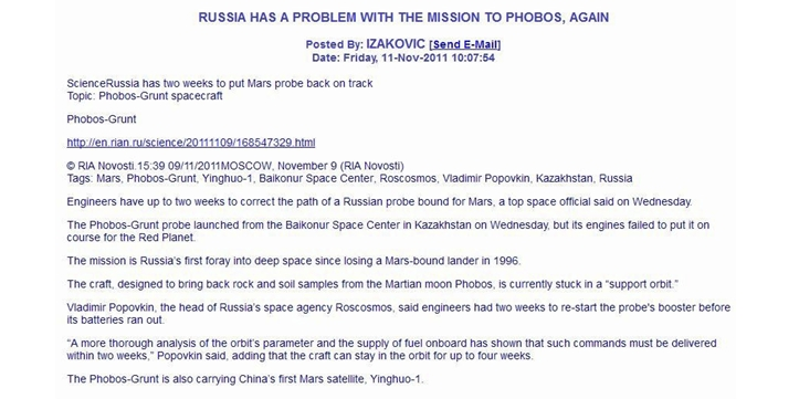 МБ спрашивает: Мити, почему зонды, посланные Русскими на Марс, потерпели полную неудачу? Также, все их попытки выйти на орбиту Марса или его лун, оказались несостоятельными.