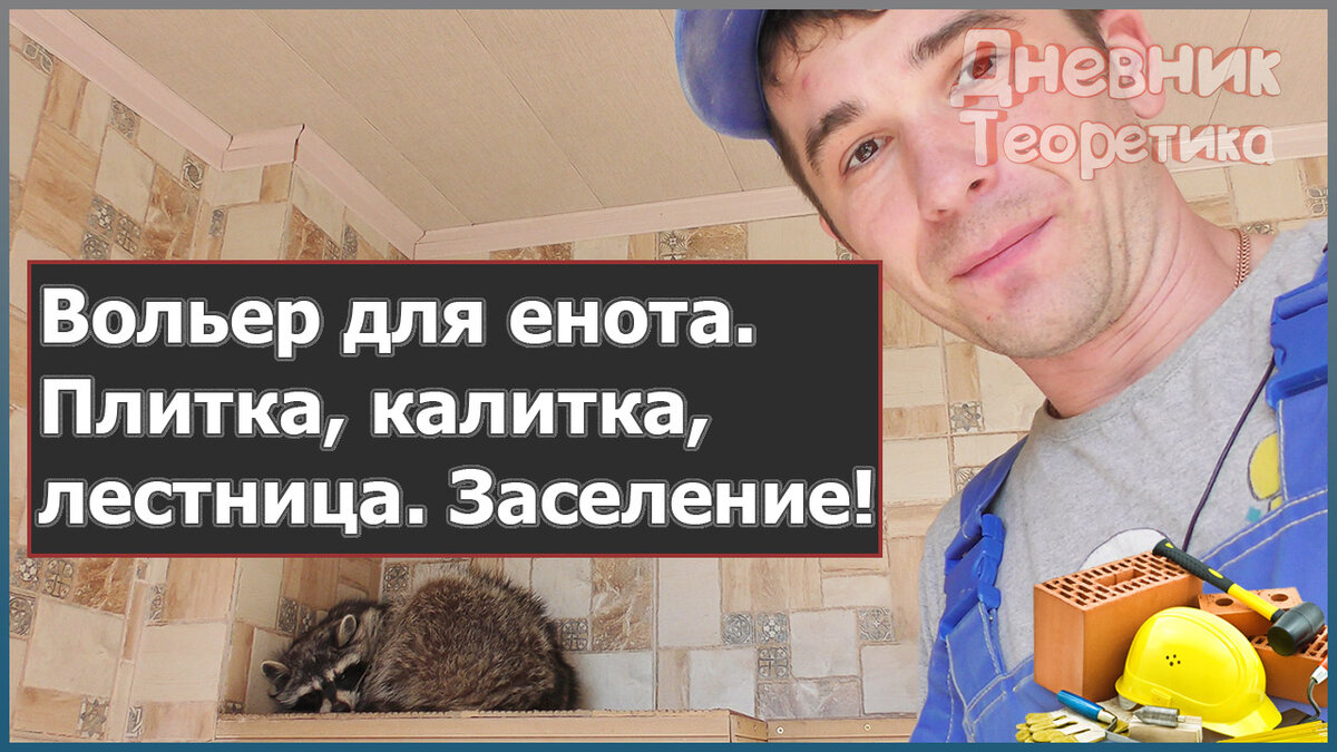 Вольер для енота. Плиточные и потолочные работы, монтаж калитки и лестницы. Заселение! [№91]