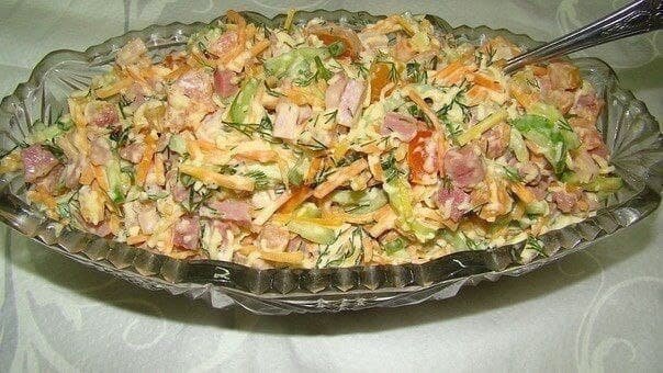 корейская морковь 250 г 2 огурца 2 помидора петрушка укроп зеленый лук твердый сыр 150 г говядина вареная 250 г майонез по вкусу Приготовление: Сыр натереть на средней терке или нарезать мелкой соломкой. Вареную говядину мелко нарезать. Нарезать мелкими кусочками огурцы и помидоры, зелень нашинковать. Добавить приготовленную заранее или купленную корейскую морковку. Все ингредиенты смешать, посолить, заправить майонезом и хорошо перемешать. Салат готов. Приятного аппетита!