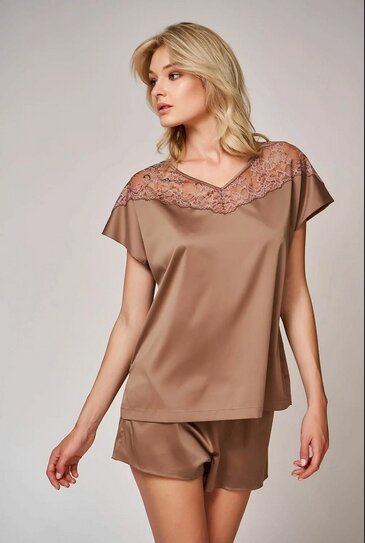 При покупке пижамы стоит внимательно присмотреться к составу материала: чаще всего ночное белье выполнено из полиэстерового атласа и его хорошо использовать взаимозаменяемо с хлопковыми пижамами. Атласные пижамы позволяют чувствовать себя необычайно чувственно как в ленивые вечера, так и за утренним кофе - вот почему они так популярны! Этот материал красиво подчеркивает достоинства женской фигуры, он льется и очень приятен на ощупь. К тому же атласные пижамы чаще всего встречаются довольно свободного и повседневного кроя, но из-за роскошного внешнего вида материала даже такие формы выглядят чрезв