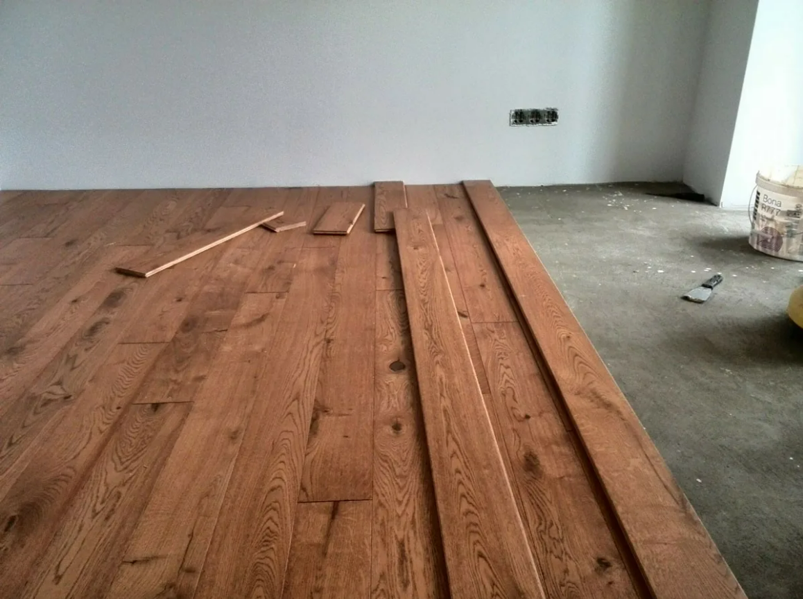 Масса клееного массива выше, чем у паркетной доски, что позволяет хранить более крупный напил досок в больших количествах. Массивная доска еще и намного красивее. Но тут все зависит от того, где будет она уложена. Если есть возможность помещения теплого, то лучше использовать паркет. Мрачное помещение с высокими потолками отлично дополнит массивная доска с темными породами древесины. Есть один недостаток, который может серьезно повлиять на общий вид интерьера. Это наличие влажности. И если паркет не просушен должным образом, то в местах, которые будут обрабатываться маслом, паркет может начать гнить. В домашних условиях убрать конденсат не так уж и сложно. Еще одним минусом массивной древесины является недостаточно высокая прочность. Это особенно важно, когда в комнате живут дети. Если вы хотите что-то более дорогостоящее, то подумайте о таких материалах, как паркетная доска или массивная керамическая плитка. Укладка пола из древесины своими руками Перед тем как начать работы, связанны