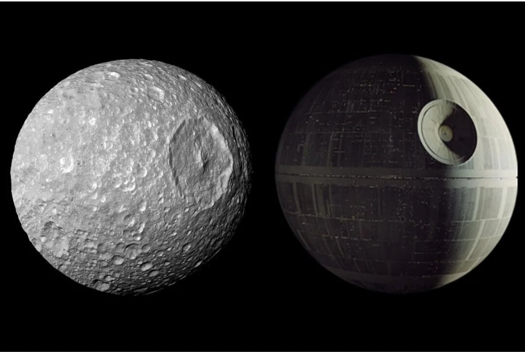 На орбите Сатурна космическая научно-исследовательская обсерватория Cassini зафиксировала «Звезду смерти». Ей оказался один из спутников Сатурна - Мимас. Сатурн обладает большим количеством спутников: на сегодняшний день известно более шестидесяти. Один из них — Мимас — привлекает и пугает одновременно. Причиной стало его сходство со Звездой Смерти из «Звездных войн». Спутник был открыт в 1789 году английским астрономом У. Гершелем, одновременно с Энцеладом. Назван был в честь древнегреческого титана Мимаса. Космическое тело достигает в диаметре 400 км, замыкающее по этому показателю вторую десятку спутников Солнечной системы. На поверхности Мимаса можно выделить крупнейший кратер Гершеля, диаметр которого составляет 130 км. Он был сформирован в ходе столкновения Мимаса с гигантским астероидом. Именно кратер Гершеля делает Мимас похожим на «Звезду смерти». #мимас #спутник #сатурн #космос #вселенная #галактика #звезда смерти