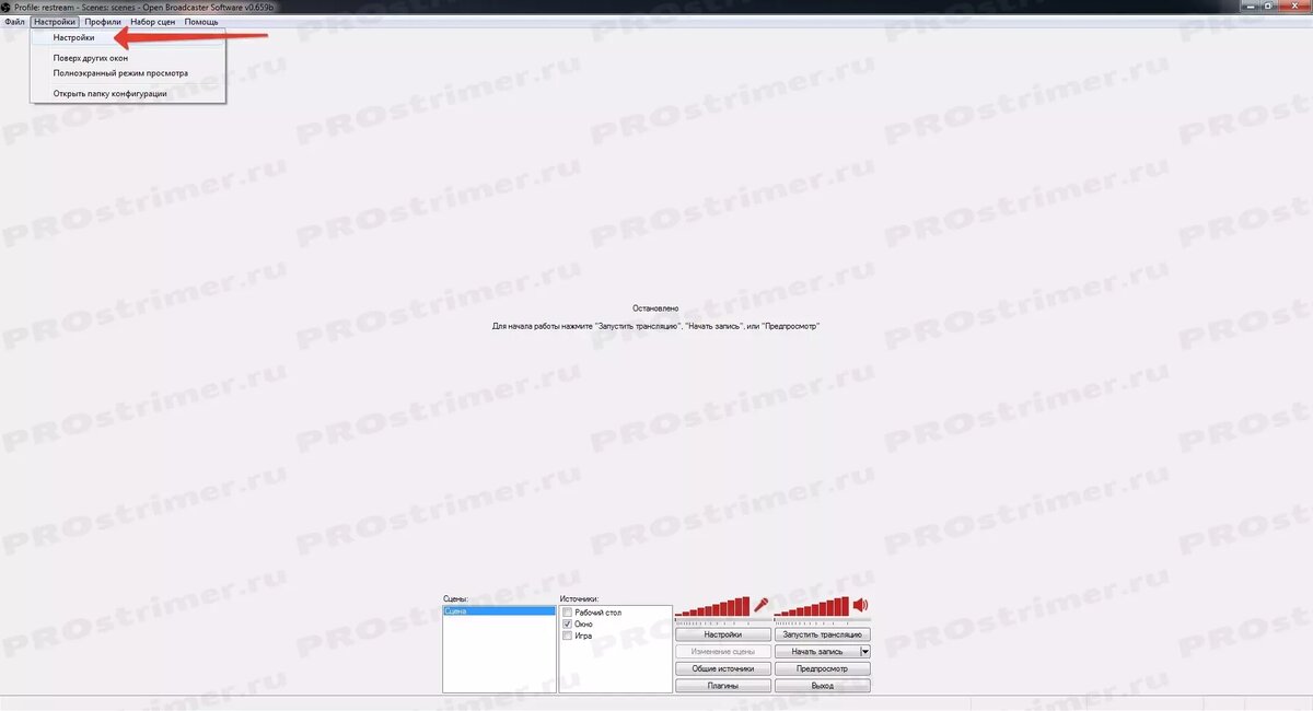 2.1. Запускаем OBS Classic и идем в «Настройки» -> «Настройки».