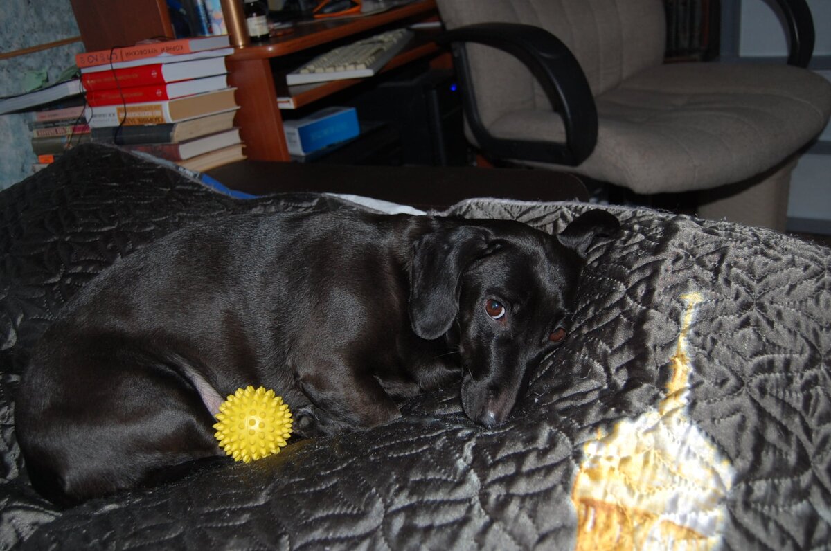 У Аглаи Топоровой зашел разговор о собаках - какая лучше, породистая от хороших заводчиков или оннеукусит из приюта. Скажу так: это наша бедная дорогая Псаки. Была щенком от обычных плодильщиков, черная без подпалин, с высокозадостью и серьезными гормональными проблемами, которые заедала выпрошенными у родственников без моего ведома творожными сырками, сосисками, сыром и пр., и пр. Я ее вообще не кормил месяцами, только угощал кусочками мяса, чтобы она сбросила хотя бы пару килограммов, потому что завтракала и ужинала она по три раза, очень убедительно притворяясь, что голодна. Ей все верили. Она также ничего не воровала и не грызла, т. к. мы этого не видели. Только потом щеночек Фиби выволокла из-за собачьего дивана целую кучу сгрызенных острых предметов. Псаки была настолько прекрасная собака, что не всякий хозяин достоин такой. Она была лучшим сторожем, однажды выгнала из подъезда бомжа, в другой раз отчаянно защищала меня от трех "разнорабочих" у банкомата, которые спрашивали: "ты