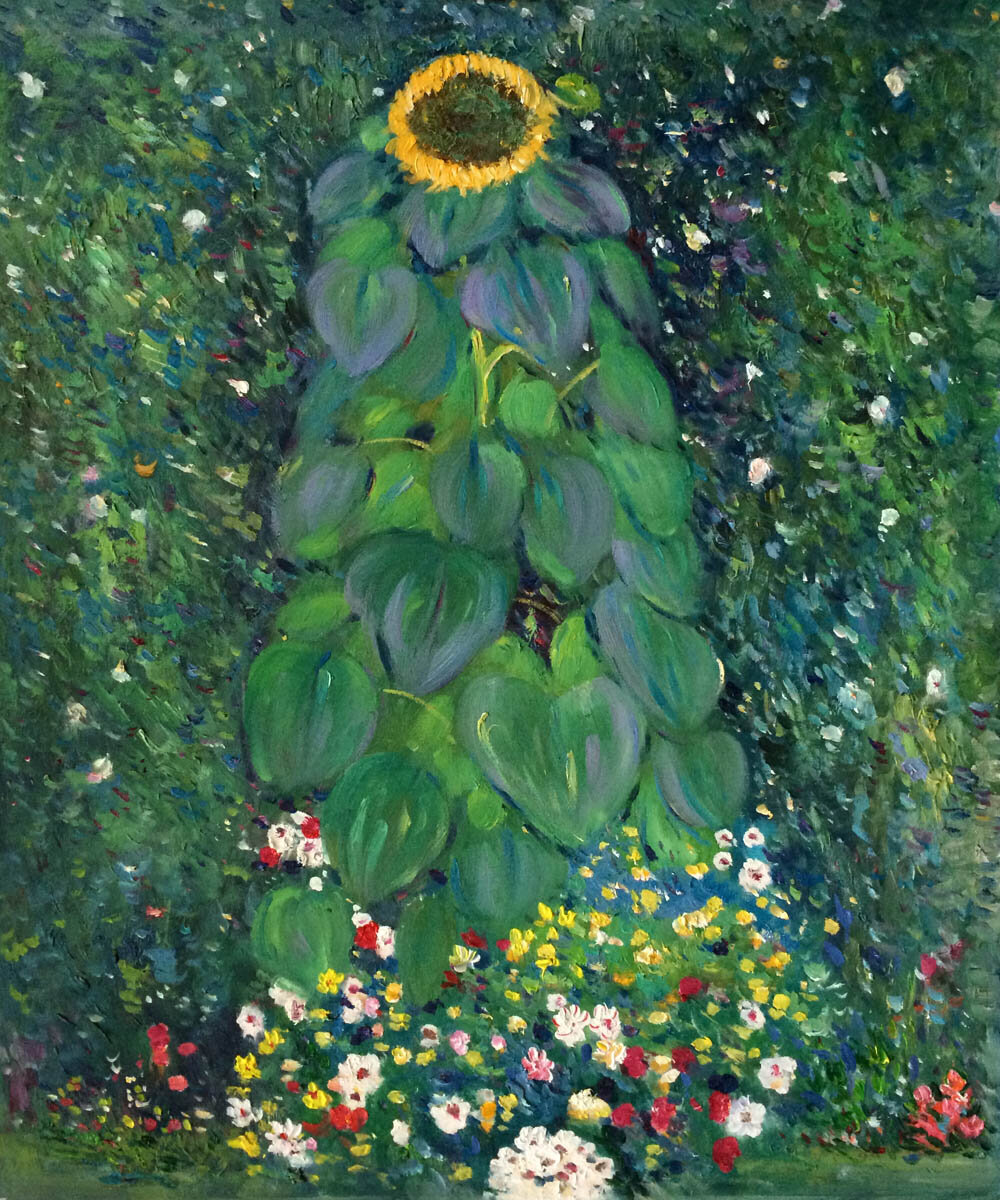 Подсолнух был написан Густавом Климтом в 1907 году. На картине изображен сочный зелёный стебель подсолнуха с листьями. Яркие цветы выглядывают из травы внизу, придавая глубину цвету подсолнуха. Сверкающая поверхность окружающей листвы отражает любовь Климта к орнаментам. Эта картина довольно сильно отличается от других картин с деревьями и цветами. В отличие от ранних пейзажей 1898 - 1902 годов, эта картина написана не под влиянием настроения ; Климт, скорее просто восхищен природой, существующей вне влияния человека. Геометрическая композиция на его картине используется не только в качестве декорации, но для усиления эффекта отрешённого наблюдения и в то же время восхищения богатством природы. Форма и листья подсолнуха навевают ассоциации с влюблёнными на его картине Поцелуй. Обе работы были впервые представлены в 1908 году на художественной выставке в Вене.