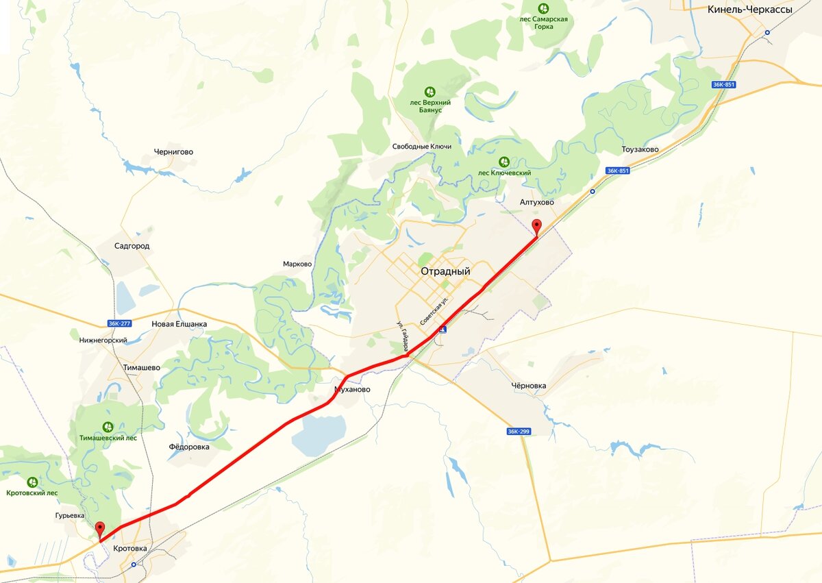 Участок маршрута: Кротовка – Муханово – Отрадный.