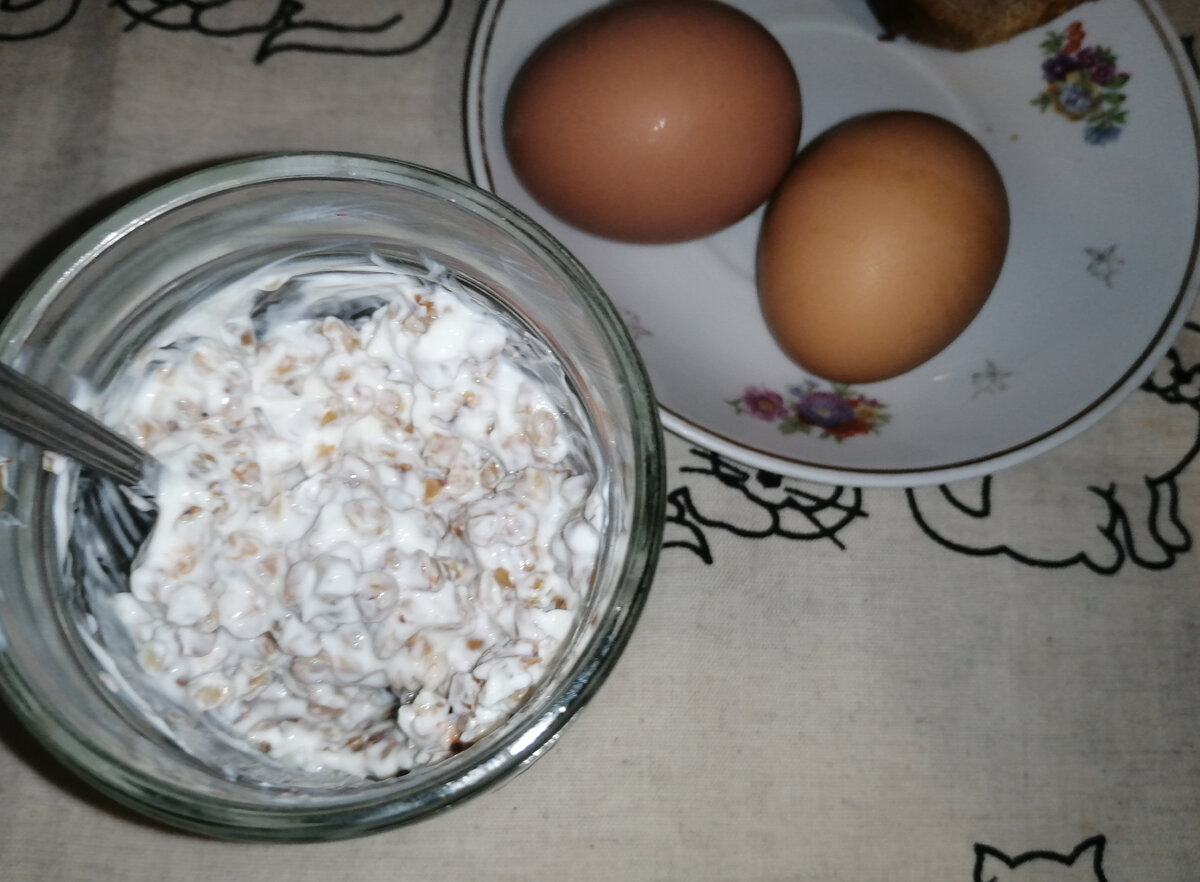 Вот тут правда я немного шиканула, спросонья не полумавши и кофе не взбодрившись😅. Сразу два яйца мне теперь слишком накладно, на неделю всего десяток, и яйца еще нужны в готовку. Но пока - гуляем, режь последний огурец😅😅😅.