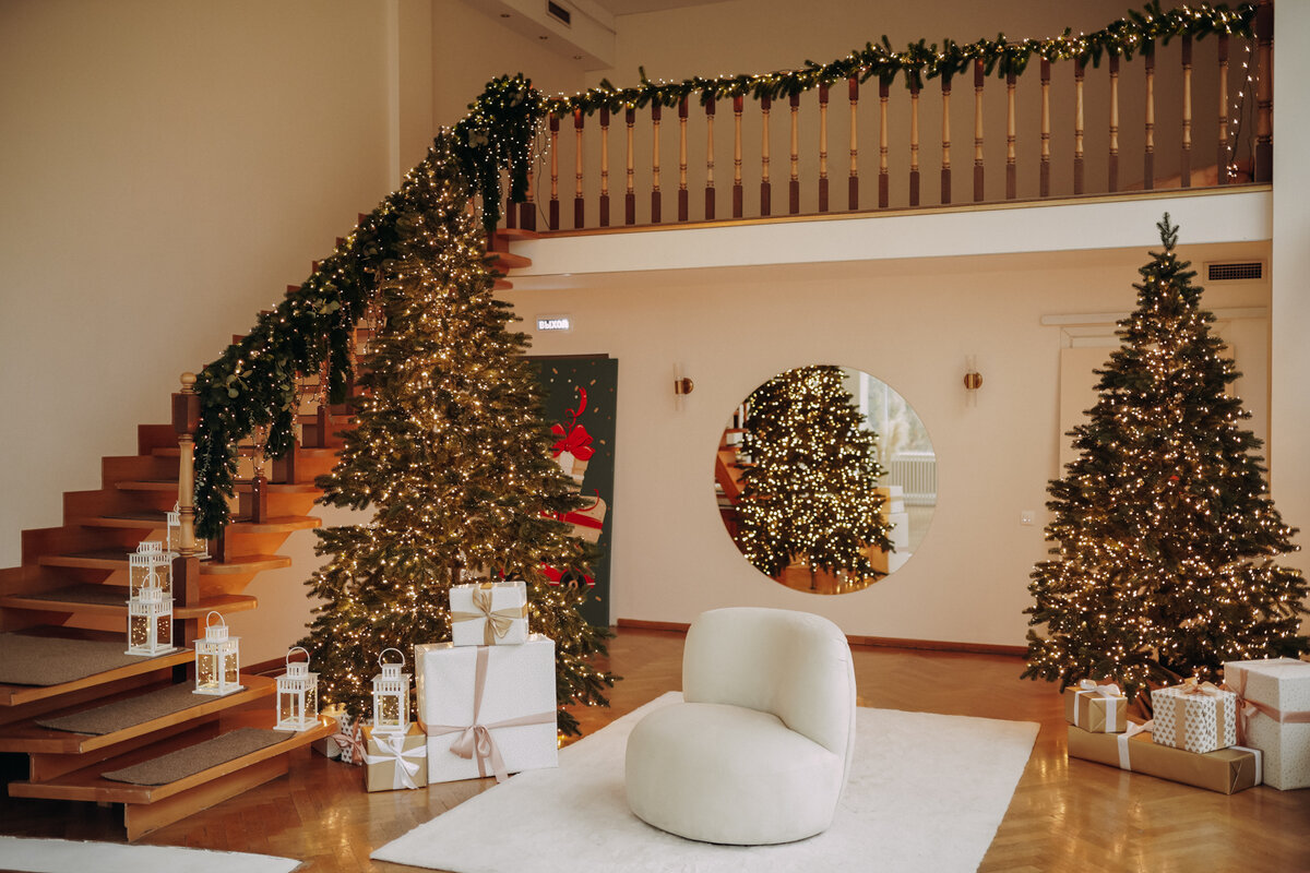 Я собрала для вас подборку из 13 вариантов студий с приятным гармоничным дизайном и красивыми новогодними украшениями.