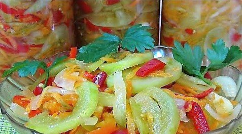 2 варианта салатов из зеленых помидоров (без уксуса) Эти рецепты подойдут для дачников у которых по осени остается много бурых недозрелых помидор на грядках. 1 вариант: Салат из зеленых помидоров Нам понадобятся продукты: 3 кг. зеленых помидоров, 1,5 кг. болгарского перца (красного), 1 кг. белокочанной капусты, 1 кг. репчатого лука, 5 крупных головок чеснока, 1 стручок горького перца, 0,5 л. растительного масла, соль и молотый перец по вкусу, 1 пучок петрушки, 1 пучок укропа, Приготовление: Тщательно вымываем и обсушиваем овощи. Нарезаем в свободной форме зеленые помидоры, болгарский перец, лук, горький перец, рубим чеснок и шинкуем ножом на доске мелко капусту. Измельченные овощи опускаем в эмалированную кастрюлю. Добавляем растительное масло и солим по вкусу. Ставим кастрюлю с салатом на огонь, доводим до кипения. Когда закипит убавляем огонь на минимум и добавляем мелко нашинкованную петрушку, укроп и посыпаем молотым перцем. Через 10-15 минут варки постепенно помешивая, раскл