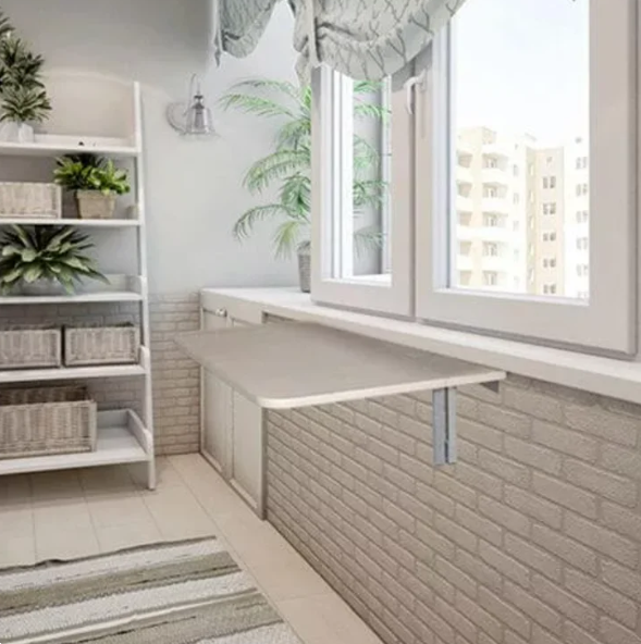 При подборе мебели может оказаться, что лоджия или балкон имеют узкую дверь, и туда невозможно занести кресло или шкаф, а если это и удается, то они занимают много места и больше мешают. Поэтому предпочтение отдается складным столам и стульям и встроенным шкафам. Складные стулья Самый простой стул складной из двух металлических скоб, скрепленных болтами, между которыми натянута ткань. Этот стул часто называют «стулом для рыбака». Его можно купить в любом охотничьем или спортивном магазине или изготовить самостоятельно. Для сиденья можно взять грубую прочную ткань которой изготавливают мешки, или кожу от голенищ старых сапог. Полка-стол Вместо стола можно сделать раскладную полку. Полка состоит из подвижной металлической скобы-опоры и деревянного щита размером не менее который крепится к стене на петлях. Такая полка в сложенном виде не занимает места. Скоба выгибается из металлической трубы или арматуры в форме цифры «семь». Концы скобы поворотно крепятся к стене металлическими хомутам