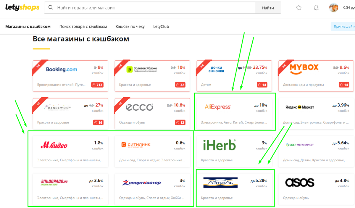 Вывод накопленного - без проблем. Иногда бывают скидочные купоны. Но это не основное тут. Магазины, у которых есть кешбек в Letyshops: Иногда кешбек бывает повышенный: 2х, 4х... 10х от изначального.