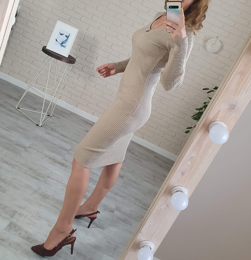 Девочки платье просто чудесное. Красиво сделано декольте. Качество такое приятное. Вязка плотная, в рубчик Хорошей толщины. Вытянуться, закататься- не должно. Совершенно комфортное. И пошив- твердая пятерка! Мои параметры 90-70-98, рост 169. Подошло в размере М. Рукав нормальной длины. Тянется отлично. По ссылке три цвета и размерный ряд.