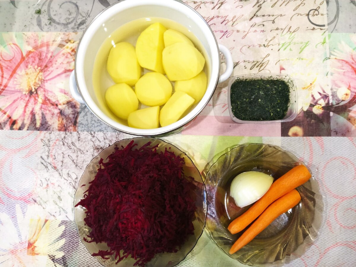 Приветствую всех на моём канале! Недавно у нашего сына был день рождения, отмечали скромно, не так уж и много потратили, об этом я писала в предыдущей публикации. Во сколько нам обошёлся наш скромный день рождения. Закупка продуктов Тем не менее решили чуток затянуть пояса, посидеть на более правильном и бюджетном питании. Какие блюда накрывала на праздничный стол писала в этой публикации Наш скромный праздничный стол, однако все сыты и довольны. А ещё сюрприз от давней подруги Два ближайшее дня я варила супы и готовила вторые блюда. В первый день у нас был горячий свекольник. Не знаю почему, но его мы любим больше чем борщ. Свекольник хорош с любым мясом: говядина, свинина либо курица. Отвариваю мясо, затем отправляю вариться натёртую свеклу, её я не обжариваю, чуть позже картофель и ближе к концу варки пассированные морковь и лук, соль, перец по вкусу. В холодильнике с дня рождения осталось несколько сваренных картошек, измельчила их, добавила квашеную капусту, репчатый лук, ошпаренн