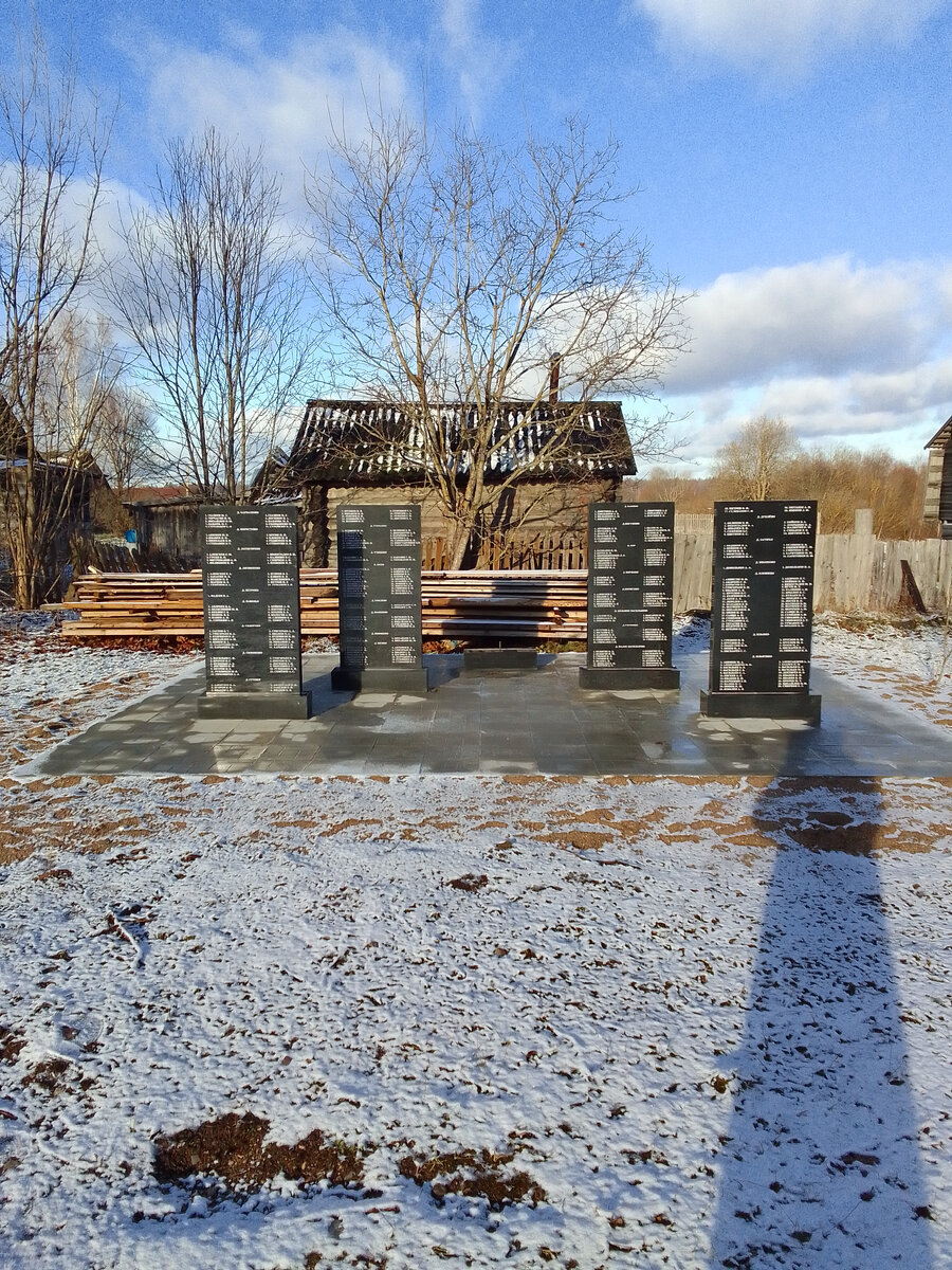 Вчера ночью выпал снег. Он шел всю ночь и закрыл половину земли.... Земля стала белой. Покрытой мокрым и холодным снегом, сквозь который просвечивала черная мокрая почва. Я убирала сквер у памятника. Памятника погибшим воинам. Это новый памятник...Старый - белый с золотыми буквами, демонтировали недавно. Потому что золотые буквы во время дождей текли, размазываясь по мрамору. Недавно привезли этот... Небольшие памятные стеллы с надписями деревень и фамилий людей, погибших в Великой Отечественной Войне.Из каждой деревни... " Д.Карманово 1.Глазков М.Г. 2.Горчагин Н.М. 3.Михайлов Н.М. 4.Павлов Н.Г. 5.Стрельцов С.Н. 6.ГлазковП.Г. 7.Логинов П..А. 8..Павлова М.В. 9.Солнышкин И.В. 10.Сурайкин И.В." Из каждой деревни здесь, в Борзынском округе кто- то ушел на войну и не вернулся. Плакали матери, бились головой о пол вдовы, зарывались в траву - мураву невесты. В нашем музее, Музее Крестьянских Родословных есть целая выставка, посвященная этому времени. Есть письма с фронта и колокол, который от