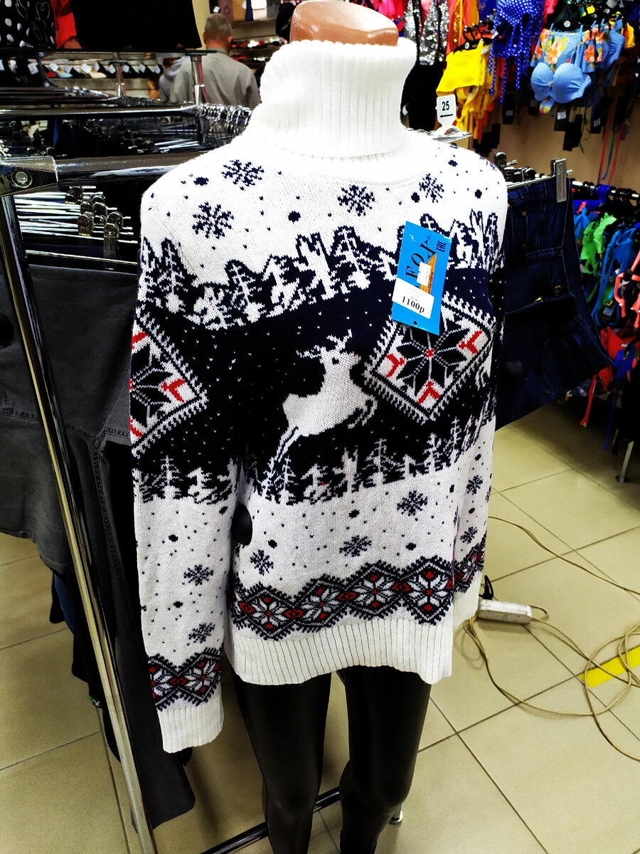 Тема тёплой одежды уже актуальна и я зашла в "Смешные цены" присмотреть новинки, которые буквально недавно появились на вешалках этого магазина. Обратила внимание, что все новые экземпляры висят с очень высоким ценником, что странно для этого магазина. Понятное дело затем начнутся скидки, ну а пока принимаем, так, как есть. В этом обзоре хочу поделиться с вами увиденными новинками, которые я заметила сред тёплой женской одежды в "Смешных ценах" города Крымск. Шерстяной вязанный свитер с закрытым горлом, с приятным новогодним рисунком. Цена 1100 рублей. Тёплая шерстяная юбка с широким ремешком в клеточку. Цена 800 рублей. Чёрный спортивный костюм из штанов и толстовки. Цена 1850 рублей. Короткая куртка безрукавка из плотной плащевки на молнии. Цена 1700 рублей. Домашний жёлтый махровый костюм. Цена 950 рублей. Бежевый плотный вязанный свитер в полоску. Цена свитера 750 рублей. Серое длинное пальто из плащевой ткани . Цена 1900 рублей. Осеннее длинное пальто с тканевым ремешком на подкл