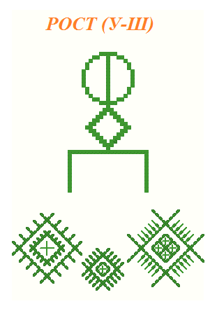 Русская руна «Рост» Её звуковой код- У-Ш. Названия: Ярило, Ярила, Яр, Егорий, Егорий волчий пастырь, Георгий Победоносец (в христианстве), Гавриил, Уриил. Воплощение Дажьбога, лик Сварога. Цвет руны: зеленый и три вида орнамента. Качества Божества: он есть светлый небесный Бог. Бог Солнца, т.е. славяно-арийское название нашего солнца. Его энергии придают светлые, чистые, добрые и сердечные помыслы, идущие из нашего сердца. Он является хранителем благих, чистых сердец и любви. Является олицетворением любви и полноценной жизни, идущей от нашего светила. Также он способен приносить и засеивать любовь. Главным тотемом Ярилы являлся конь, по этой причне конёк на доме служил символом, что Русы есть дети солнца и света. Двуглавые коники (тяни-толкай) на чарках, подвесках означали двойственную природу света, исходящею от солнца, скрытую и явную. Движение ярой силы, даже после захода Ярилы не прекращается, она аккумулируется на земле в растениях, животных, людях, в самой земле и т. д. Мужчине д