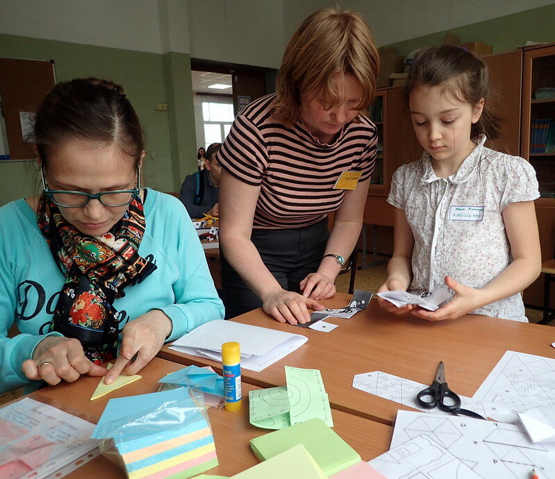 Флексагоны — плоские модели из полосок бумаги, которые складываются и сгибаются определённым образом, так, что становятся видны поверхности, которые ранее были скрыты в конструкции флексагона, а прежде видимые поверхности уходят внутрь. Такую хитрую и забавную игрушку, отчасти похожую на ленту Мебиуса, придумал в 1939 году английский студент Артур Стоун, изучавший математику в Принстонском университете в США. Только у ленты Мёбиуса одна сторона, а у нашего флексагона – три. Склеиваешь флексагон, раскрашиваешь с одной стороны, раскрашиваешь с другой стороны, потом выворачиваешь – а там есть ещё одна сторона, и она пока не раскрашена! Давайте посмотрим видео и попробуем сделать флексагон вместе. Для работы нам понадобятся шаблон (можно скачать тут https://old.mousemath.ru/our-projects/free-downloads ) ножницы, полоски бумаги и хороший клей. В этой работе очень важно следить, чтобы все сгибы были согнуты аккуратно. И тогда вам останется научиться его правильно выворачивать и красиво рас