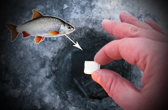 Эксперимент: прикормил лунку кубиком сахара. И увидел нечто странное куча рыбы плавают рядом сахаром