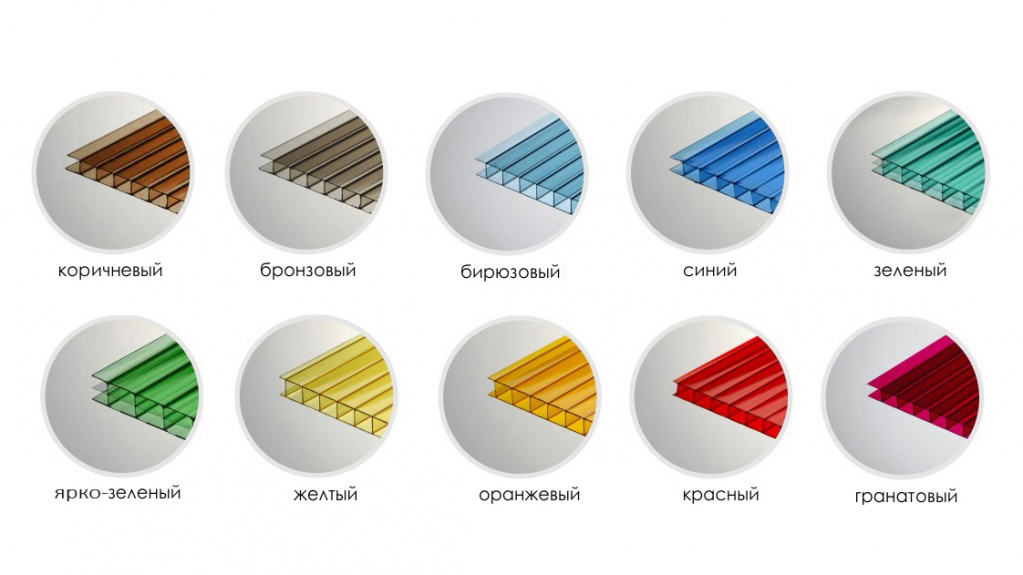 Оптические свойства поликарбонатных панелей зависят от их сечения, цвета и наличия специальных слоев, так что можно подобрать материал с необходимым коэффициентом светопропускания в широчайшем диапазоне.