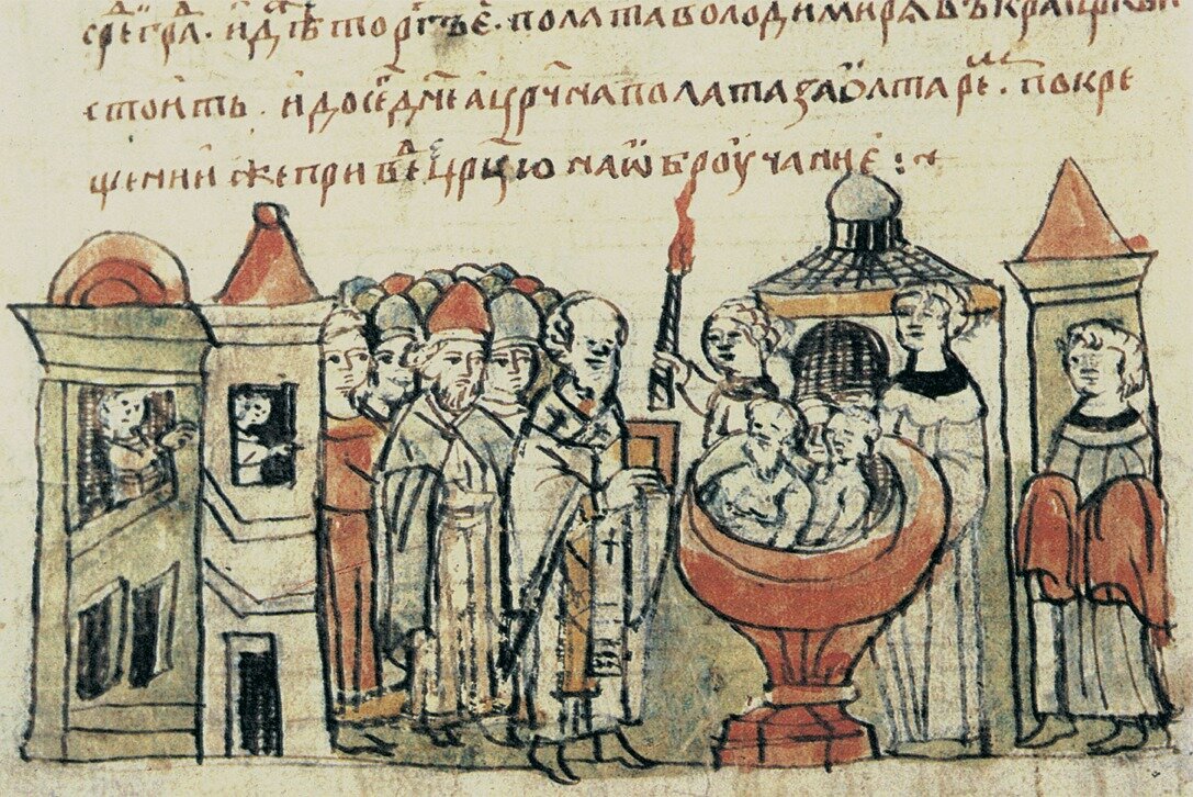 Согласно легенде, наш князь Владимир тоже вызвал к себе знатоков, только устроил не общий диспут, а принимал их поодиночке. И, решив насадить в стране христианство, крестил город Киев.