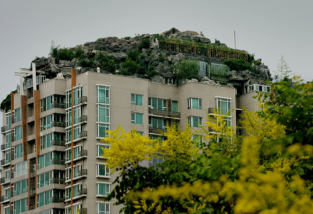 Не просто квартира в многоэтажке. Настоящая горная вилла. У соседей крыша теперь не потечет, если бассейн случайно не прорвет Эх, маловат Китай с его незавидным перенаселением! Домик на домике, как грибы после дождя, расположились. Квартирки – что в ботинке дырки, - маленькие! Не разгуляешься, когда душе вдруг захотелось. Но на то и сами китайцы по природе изворотливы и изобретательны. А тем более, если это китайский профессор – с его головой глобальные проблемы становятся пустяками. Профессор присмотрел себе квартиру на последнем этаже 26-этажного дома. И начал потихоньку заниматься благоустройством на крыше: разбил клумбы, лужайки и дорожки – нечто вроде элементов ландшафтного дизайна. Или это было нечто вроде тактики – начать под сурдинку, не сразу привлекая внимание общественности масштабами своей деятельности. Или профессор вошел во вкус. Но дело стало развиваться следующим образом. На площадь 800 квадратных метров, которую представляла собой крыша, начали активно подниматься то