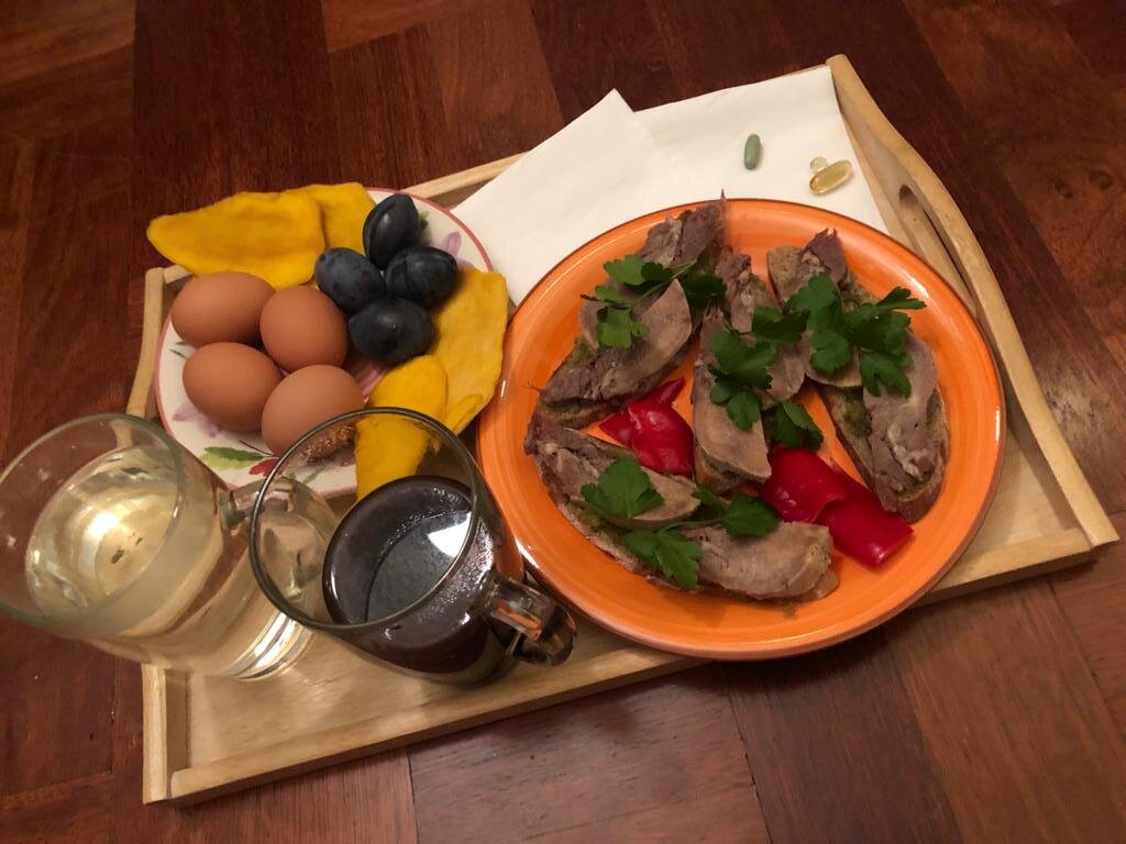 Моя подруга скоро откроет свой ресторан, мои родители 17 лет занимались ресторанным бизнесом, мой муж виртуозно готовит.... но не я! Я же та, кто не любит готовить! Кто мечтает как можно меньше времени торчать на кухне.... Однако, у меня тут есть собственный рецептик брускетты. Сама придумала - решила поделиться. Ржаной хлеб подогрейте в духовке до хрустящей корочки + сливочное масло + разбитый на блендере соленый огурец + вареный язык. Украсить крупной солью и зеленью. Вкусно разбить соленый огурец вместе с авокадо. Вот так простенько. Но мне безумно нравится это сочетание! Вообще-то сегодня у меня не много готовки. Но блок блюд, как мне кажется, удачный. Готовим плов + готовим поджарку в заморозку + остатки терки скидываем в завтрашний бульон. Поджарка используется во многих блюдах, но она отлично храниться в замороженном виде. Я заморозила 3 формы для льда - завтра скину получившиеся кубики в один пакет, чтобы в морозилке было больше места. Моя новая терка Borner Profi - оставля