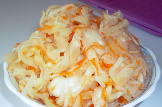 В моей семье квашеную капусту любят. Мы едим ее и зимой и летом. Перепробовали множество рецептов, но это рецепт полюбили больше всего. По этому рецепту капуста получается хрустящей и очень вкусной. Попробуйте приготовить и вы поймете о чем я говорю. Ингредиенты: - капуста белокочанная – 2 кг., - морковь – 250 гр., - вода – 2,5 л., - сахар – 2 ст.л. без горки, - соль – 4 ст.л. без горки, - перец горошком – 8 горошин, - лист лавровый – 3 шт. Приготовление: 1) подготавливаем овощи (капусту нужно брать белую, зеленая капуста не подходит для закваски). 2) занимаемся приготовлением рассола. Берем кастрюлю на 2,5 литра, наливаем в нее воду (лучше фильтрованную), добавляем соль, сахар, перец и лавровый лист. Доводим до кипения и выключаем. Остужаем. 3) пока остывает рассол шинкуем капусту, натираем на крупной терке морковь. В большой миске смешиваем морковь с капустой, овощи необходимо немного подавить руками, чтобы они быстрее пустили сок. 4) в подготовленные банки (у меня 2 банки( 3хлитрова